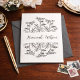 Estes cartões de notas dobrados personalizados apresentam flores pretas e brancas e espaço para personalizar com seu próprio nome. Combine-os com um envelope colorido para combinar com sua personalidade.