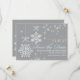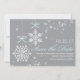 Anuncie seus próximos esponsais com estes belos cartões de notificação de data de casamento e anúncios em azul claro de casca de ovo e floco de neve cinza, acompanhados de um par de enfeites de floco de neve e fitas azuis claras com reflexos em forma de coração na neve na frente do cartão. Adicione sua história de amor pessoal no verso destes cartões de notificação de data de casamento com tema de inverno. Arte © Chrissy H. Studios, LLC. Todos os Direitos Reservados.
