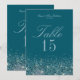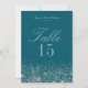 Cartões de Número de Mesa com Brilho Verde Azul e Hortelã. Glamourosos, com brilho cintilante verde azul, este cartão de mesa combina com nossa decoração de casamento e chá de noiva com brilho. Para mais personalização, use a ferramenta "personalizar" no Zazzle. Opções de cores adicionais estão disponíveis em nossa loja no Zazzle em MetroEvents. Projetado por Metro-Event.com