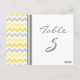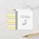Elegantes e modernos cartões de número de mesa de casamento em amarelo limão brilhante, cinza e branco com um padrão de zigue-zague xevron retrô e divertido. Personalize esses cartões para criar cartões de número de mesa personalizados para cada mesa em seu casamento. O padrão está disponível em uma ampla gama de produtos de casamento correspondentes.