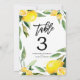 Cartões de Número de Mesa de Casamento com Aquarela de Limão