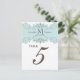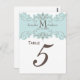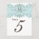 Cartão de número de mesa de casamento com monograma em espiral, desenhado por Elke Clarke©2010. Personalize com suas informações. Peça um por mesa com o número de cada mesa, mas ainda receba o desconto de quantidade para o número total encomendado. É necessário fazer um pedido separado para cada número de mesa. Convites de casamento com espirais azuis são uma mistura elegante entre floreios vitorianos e logotipo de casamento com monograma e nome modernos e são perfeitos para criar um tema romântico antigo com azul e taupe como combinação de cores. Personalize com seus nomes e cores de casamento usando os prompts do menu fácil de usar do Zazzle após selecionar "Personalizar". Desenho por Elke Clarke ©2010 Gráficos Licenciados