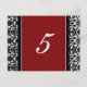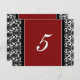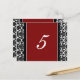 Elegantes e clássicos cartões de número de mesa de casamento em vermelho, preto e branco com padrão vintage de damasco floral romântico. Personalize esses cartões para criar cartões de número de mesa personalizados para cada mesa em seu casamento. Padrão disponível em uma ampla gama de produtos de casamento correspondentes.