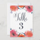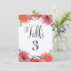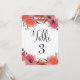 Lindas flores em aquarela rosa e laranja suave com folhas e acentos em azul marinho. Concluído com tipografia 'NÚMEROS DA MESA' em bela letra cursiva/contemporânea. Personalize online e receba-os em sua porta. Cada um vem com um envelope branco do mesmo tamanho incluído no custo.