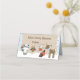 Cartões de Mesa personalizados para seu próximo chá de fraldas ou aniversário em um tema de inverno em floresta com azul.