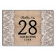 Lindos e elegantes burlap background e vintage white lace, cartões de casamento com número de mesa. Cartões de números de mesas para o casamento do tema do país.