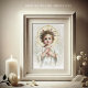 Apresentando uma bela imagem católica tradicional do coração sacrado de Jesus quando criança com os corações de Jesus, Maria e José em ouro nas costas. Uma oração também está nas costas para a noiva e o noivo. Todo texto e fontes podem ser modificados.