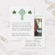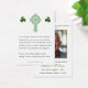 Lembre-se dos seus entes queridos em oração com esta bela imagem tradicional de uma cruz celta verde com baratas irlandesas. Estes belos cartões de oração memoriais funerários são comumente distribuídos nos funerais como um lembrete para rezar pelo falecido. Todo texto e fontes podem ser modificados.
