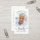 Funeral Forever Copia Cartões De Oração Fotografada. Mantenha a memória de um ente querido perto com este cartão de oração personalizado com uma foto tesourada em forma de arco, o título FOREVER EM NOSSOS CORAÇÕES, o nome e as datas e uma mensagem de memória emocionante editável. Com a sua design preto e branco clássico simples, mas elegante, e a moderna tipografia de escrita manuscrita, ela faz uma manutenção significativa para partilhar num funeral, num serviço de memorial ou na Celebração da Vida e oferece conforto e um tributo duradouro à família e aos amigos. Seu pequeno e portátil tamanho de 3,5x2" (tamanho de carteira) torna conveniente que os entes queridos o carregar com eles como um lembrete da vida e do espírito de seu ente querido. A personalização torna cada placa única.