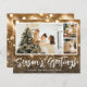 Pequenas cartões com fotos de férias em papel de 4,5" x 5,6" semibrilho de 110 lb. apresentam suas três fotos favoritas, seus nomes e saudações de temporada em letra chic são impressos em um padrão de brilho de ouro e bronze. Certifique-se de verificar seu pedido duas vezes antes de adicioná-lo ao seu carrinho, pois o que você vê na tela é o que será impresso. O Serviço de Design ao Vivo pode ajudá-lo com seu layout de design, se necessário.