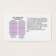 Estes cartões são a solução perfeita para enviar seus prêmios ou presentes aos clientes! Com um modelo de recorte que mostra aos clientes como fazer uma pedicura completa com apenas dois wraps, assim como um lugar no verso para você escrever ou carimbar suas informações de contato personalizadas, eles são uma solução pronta para tudo em um, para que você não tenha que passar pelo incômodo de imprimi-los você mesmo (usando toneladas de tinta e papel!) e passar um tempo valioso que você poderia usar para fazer sua empresa crescer!