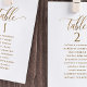 Ajude seus convidados a encontrar sua mesa com este elegante cartão moderno de assentos com nomes de convidados. Cartões duplos para que os hóspedes possam procurar os dois, frente ou verso pelos seus nomes. Espaço livre ao redor, dando-lhe a liberdade de usar clipes ou furos de perfuração para monitores suspensos ou usar o suporte de mesa. Fundo branco e texto em ouro. Detalhes da caligrafia escrita à mão. Parte da nossa coleção de "Estoque de Casamento de Caligrafia Elegante". Visite a coleção inteira em: https://www.zazzle.com/collections/elegant_calligraphy_minimalist_wedding_stationery-119497981924462546
