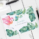 Esta ponte tropical apresenta minha mão original pintada de cor d'água rosa flamingo e folha de palma de monstera em um fundo branco nítido. Os nomes são definidos em uma moderna escrita de pincel e sans serif typografia. Personalize como quiser. A carta de proposta de casamento do estilo litoral reverte para uma cor verde-turquesa sólida. Uma carta de proposta sobre o tema da praia para perguntar à dama de honra ou anunciar seu noivado. Para ver mais designs visite DotellABelle no Zazzle. Victoria Grigaliunas é uma artista profissional na Palm Beach Florida.