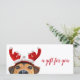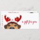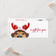 Ótima ilustração de animais de Natal, Feliz, com um cão curioso vestindo uma faixa de cabelo de rena. Este cartão de presente sazonal engraçado e festivo é perfeito para a sua pequena empresa ou para oferecer amigos e família.