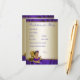 Previsões de chá de bebê roxo e dourado para cartões de chá de bebê e cartão de conselhos para os pais com adorável bebê étnica usando tutu roxo e pérolas em um par de sapatos elegantes dourados de salto alto em um fundo roxo e dourado. Essas previsões para o bebê e cartões de conselhos podem ser personalizados para o seu evento. Basta ter seus convidados para preenchê-los e o mais próximo com as previsões ganha um prêmio. Certifique-se de manter todos os cartões e salvá-los como lembrança do bebê. Você pode adicionar seu próprio texto.