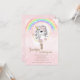 Convide toda a sua família e amigos para o primeiro aniversário do seu bebê com este convite temido mágico que teme unicórnio, arco-íris, nuvens cor-de-rosa e estrelas ouros.