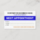 Mantenha-se à frente do jogo com nossos Cartões de Próxima Consulta em Volume! Esses lembretes profissionais garantem que os clientes nunca percam suas consultas de acompanhamento, aumentando a retenção e maximizando sua agenda. O design limpo e moderno projeta uma imagem sofisticada, enquanto a embalagem em volume oferece um valor excepcional. Perfeitos para qualquer serviço profissional, desde clínicas médicas até salões de beleza, esses cartões fornecem um sistema de agendamento tangível e confiável. Aumente a eficiência e a fidelidade do cliente com nossos cartões de próxima consulta em volume de alta qualidade. Peça os seus hoje e sinta a diferença!