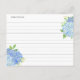 Esses cartões de receita de chá de noiva apresentam um design floral em aquarela com flores de hortênsia azuis, folhas e folhagens. Pasta de receitas de chá de noiva correspondente e outros produtos também estão disponíveis.