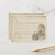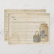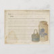Este cartão de receita apresenta um fundo envelhecido, como se já tivesse visto uso intenso. Um crock de grés e um balde de madeira adicionam um elemento de charme de casa de fazenda ao design.