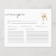 Cartões de Receitas de Chá de Noiva Pérolas Rosa e Prosecco