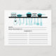Cartões de receitas de cozinha de Chá de panela giro com esboços azuis e pretos de pratos, potes, taças e utensílios de cozinha. A frente do nosso cartão de receita oferece espaço para um título de receita, da cozinha e do espaço de ingredientes. Sacudir nosso cartão de receita para ver as direções, o tempo de preparação e o tempo total. Visite nosso compro para convites de chá de panela correspondentes Disponíveis em nosso compro em uma grande variedade de cores populares do chá de casamento. Chá de panela perfeito para o estoque do chá de panela da cozinha.