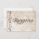 Este cartão de recepção de casamento tem um fundo antigo e desgastado com vinhas e flores subindo pelo lado esquerdo. Ótimo para casamentos no campo, casamentos em celeiros e casamentos de cowboy. Escolha entre cantos quadrados ou arredondados. Basta adicionar os detalhes da sua recepção no verso do cartão.