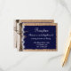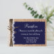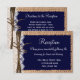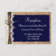 Este cartão de recepção de casamento rústico é perfeito para qualquer casamento campestre. Ele apresenta um fundo de aniagem impresso rústico com renda e cordel impressos na lateral. A letra está em cima de um retângulo azul-marinho com bordas desgastadas. Perfeito para um casamento campestre ou num celeiro. A aniagem, o cordel e a renda são apenas desenhos impressos. Não são aniagem, renda ou cordel de verdade.