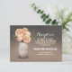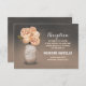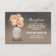 Carto de recepção de casamento com jarra de pedreiro pintada e flores de pêssego elegantes e fofos. A jarra de pedreiro é uma peça de decoração fabulosa para o seu casamento e este cartão de recepção de jarra de pedreiro desgastado é uma escolha adorável para a sua papelaria de casamento correspondente.
