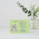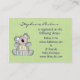Feche um dos lembretes do registro de presentes com cada convite de chá de fraldas para ajudar a notificar seu convidado de onde a mãe a ser está registrada para presentes de bebês. Os cartões de registro de chás de fraldas apresentam um fundo verde, com um ursinho de bebê coala e um conjunto de blocos ABC. A parte traseira da placa apresenta o mesmo fundo verde, tecido. As placas são projetadas como um grande estilo de cartão de visita. Oferecida em três tamanhos, o Design pode facilmente ajustado qualquer um dos seguintes tamanhos: o Chubby (2,5" x 3,5") embalado como 100 placas, o Skinny (1" x 3") embalado como 20 placas ou o Business (2" x 3,5") embalado como 100 placas. Para escolher um tamanho diferente, basta selecionar a guia "Opções de Cartão de visita". Use o modelo personalizado para personalizar com todo o seu próprio texto. Altere o estilo e/ou fonte do texto ou adicione texto adicional selecionando o recurso "personalizá-lo"