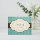 Este cartão de resposta de convite para o casamento apresenta um fundo azul listrado no qual uma fita marrom de chocolate escuro apresenta um emblema branco com bordas recortadas. Esta forma curvada e simétrica, que parece um recorte de papel, enquadra as palavras "gentilmente responda [por - data personalizável]" com um script suave que floresce na frente. Na parte de trás está uma linha para o convidado escrever seu nome e verificar se ele aceita ou recusa, e o número de convidados presentes. A design tem um sentimento angustiado, vintage, envelhecido que complementa o tema da elegância simples e antiquada. Explore a suíte de design de Gráficos Vintage... Blue Cream Sage Verde Lilac Roxo Morango Rosa Ouro Amarelo Chocolate e Morango Rosa Azul Marinha Azul Azul Vermelho e Azul Marinho Azul Roxo Sujo Azul Não consegue encontrar sua cor exata? Apenas me envie um e-mail: colleen@foreverlogos.com - Eu farei isso, só para você!