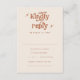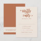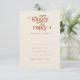 Este é um convite de RSVP de casamento retrô em terracota. Edite a maioria* das palavras e cores neste cartão de encerramento retrô para fazê-lo combinar com o tema do seu evento + estilo pessoal! (a frase "kindly reply" não é editável, mas você pode alterar as cores dela!) // Para designs correspondentes, procure BIRDIE na loja Sincerely By Nicole Zazzle. * Se você gosta deste design, mas não o vê disponível para algo que você está procurando, por favor entre em contato comigo a qualquer momento :)