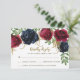 Cartões de Resposta de Casamento Burgundy Rústico e Azul-Marinho - com belas rosas e peônias pintadas em aquarela em tons de Marsala, burgundy e azul-marinho, intercaladas com folhagens. Os toques dourados nas flores e folhagens trazem sofisticação. A tipografia é impressa em dourado e bronze, realçando a decoração. Visite a página da coleção para ver todos os produtos relacionados.