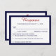 Personalize este RSVP com as informações do seu casamento. Estes RSVPs são perfeitos para casamentos náuticos, oceânicos, costeiros, à beira-mar, na praia e de destino. O design tem uma borda azul-marinho elegante com um motivo de lagosta vermelha.