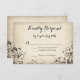 Cartões de Resposta de Casamento Rústico com Floreios Elegantes Vintage com um fundo barroco antigo envelhecido de espirais pretas. Basta adicionar os detalhes do seu cartão de resposta de casamento ao modelo. Estes são ótimos para cartões de resposta de casamento rústicos no campo ou para qualquer casamento que procure um tema rústico elegante.