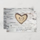 Cartões de RSVP de Casamento Rústico com Casca de Bétula - apresentam um fundo de casca de bétula branca com tons de marrom, cinza, preto e outras cores neutras. O design também apresenta um coração esculpido de forma realista na casca de bétula onde você pode "esculpir" suas iniciais e data do evento e fontes tipográficas modernas, para um toque adicional, são usadas para o restante da redação do convite. Este produto mostrará um elemento atemporal para o seu evento por anos e combina com qualquer tipo de tema de casamento, cor ou estação - desde casamentos vintage, outono ou inverno, ou os temas rústicos sempre populares. Visualize a coleção correspondente nesta página para encontrar produtos coordenados que atendam às necessidades do seu evento.
