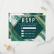 Cartões de Resposta pós-modernos, artísticos e elegantes com impressão falsa de ouro, verde esmeralda e mármore abstrato branco. Este design clássico e sofisticado é perfeito para qualquer evento elegante e moderno, incluindo casamentos e ocasiões cotidianas. Personalize com sua própria mensagem na frente, bem como um monograma inicial personalizado no verso. Todo o design de impressão de foto.