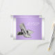 Sapatos de salto alto roxo lavanda elegante com glitter branco prateado template de RSVP para festa de aniversário e evento. Este lindo RSVP de festa de aniversário roxo lavanda é facilmente personalizado para o seu evento, basta escolher o botão "Personalize!" para começar a adicionar os detalhes do seu evento, estilo de fonte, tamanho e cor da fonte e texto. Por favor, note que todos os adesivos, cartões e convites que você encontrará na Zazzle são gráficos impressos sem joias, laços, relevos, ou quaisquer outras partes ou peças adicionadas.