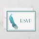 Um lindo cartão de resposta RSVP de casamento em estilo Art Deco vintage em verde Teal e branco. Uma borda dupla envolve o desenho de um grande pavão sutilmente sombreado e padronizado com uma cauda decorativa..