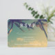 Cartões de resposta de RSVP de Casamento de Palm Beach para resposta. Foto típica da ilha exótica no caribe ou em outro local tropical. Dê aos seus hóspedes uma maneira de responder se eles forem ao seu elegante casamento de destino. Linda imagem retrógrada com modelo de tipografia na moda. Parte do conjunto de coleções de correspondência de tendências com convites de recepção e mais para noiva e noiva. Texto personalizável e qualidade do papel. Cantos de recorte arredondados especiais opcionais. R.S.V.P. Aceita com prazer / Recusa com pesar. Vista da orla com palmeiras balançando perto do oceano e céu azul. Carregue sua própria imagem de estoque bonito para este modelo, opcionalmente.