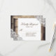 Cartões de resposta RSVP RSVP de madeira rustica e casamentos de rendas com fundo de celeiro rústico e design de rendas impressas nos cantos. Este design exclusivo está em ambos os lados da placa de resposta. Use o botão "Personalizar" para mover as coisas ou adicionar ou excluir linhas de texto para seu próprio cartão de resposta de casamento exclusivo.