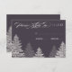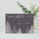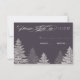 Cartões de RSVP de convite de casamento de inverno moderno cinza e branco com árvores perenes. Personalize com o seu texto de informações de casamento.