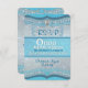 Um tema de casamento de conto de fadas muito romântico com páginas de pérola transparentes realistas emolduradas em diamantes e renda contra um fundo azul aqua, com silhuetas de cavalos-marinhos.
