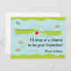 Uma ilustração esbranquiçada de um jacaré segurando um coração vermelho na boca. Está prestes a oferecê-lo ao outro gator na lagoa. O texto diz: "Eu teria uma chance de ser seu Namorados!". Personalize com o nome de uma criança.