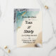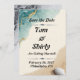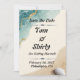 Um cartão de salvar a data com tema de praia. Todo o texto é editável