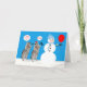 Deseje a qualquer um um Feliz Aniversário de Véspera de Natal com dois bonitos guaxinins com um boneco de neve com um pássaro empoleirado em seu braço enquanto segurava um balão vermelho.