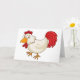 Esta design é uma galinha de desenho animado. O frango é branco com cauda vermelha e está de pé. O frango está no estilo do desenho animado. Este design de galinha de cartoon parece excelente neste Cartões de Saudação