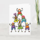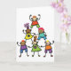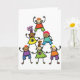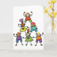 Um design muito legal de muitas crianças que formaram uma pirâmide. Estas crianças são desenhadas e estão todas vestindo diferentes topos coloridos. Estas crianças parecem muito brilhantes, coloridas e alegres. Este design de pirâmide infantil parece excelente nestas placas de saudação