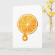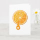 Fruta fresca é tão boa e, claro, saudável. Esta design é de uma bela laranja fresca que foi cortada com um pouco de suco de laranja descendo. Esta laranja fresca parece excelente nestas placas de saudação