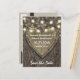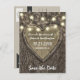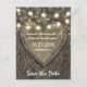 Cartões de Save The Date de Carvalho Rústico Country - apresentam um fundo de casca de carvalho com um coração esculpido e luzes de corda. Veja toda a coleção correspondente neste design abaixo.