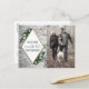 Cartões de Save the Date de casamento botânico com árvore de bétula - apresentam um fundo rústico de casca de árvore de bétula com elementos florais de feto, flores de lírio-calla, flores simples, gipsófila, folhas e mais. A caixa de texto é um triângulo elegante com uma moldura impressa em foil dourado falso. Altere a foto do casal de demonstração para uma sua.